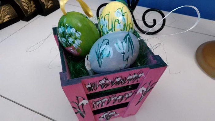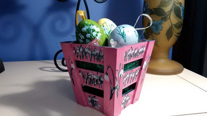 Coșuleț lemn cu 3 ouă pictate – GHIOCEI