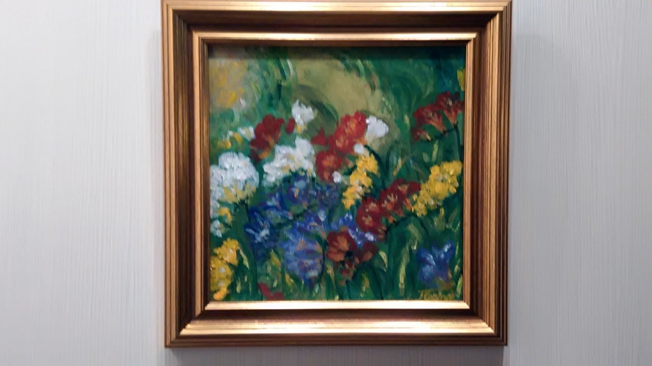 Pictură în ulei pe carton pânzat, 20x20cm, tehnică în straturi, vernisată și înrămată.