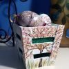 Coșuleț lemn cu 3 ouă pictate – FLORICELE DE CÂMP ROȘII