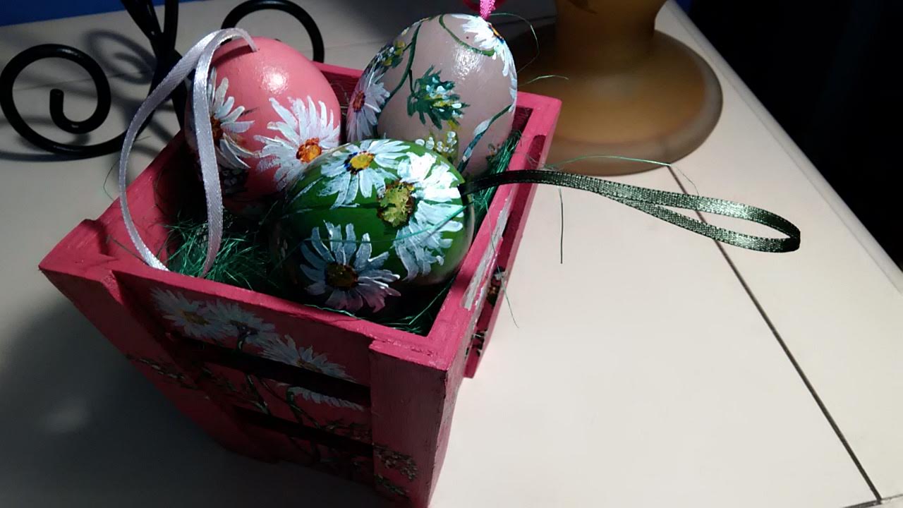 Coșuleț lemn cu 3 ouă pictate – MARGARETE