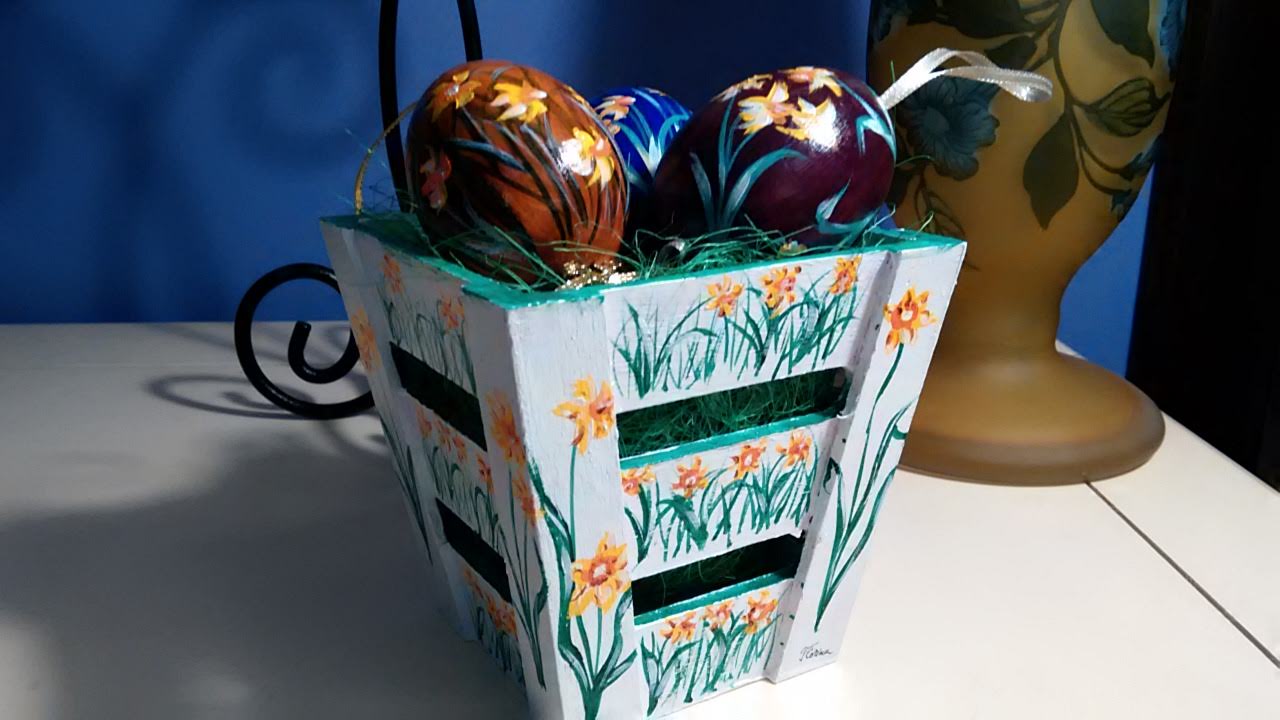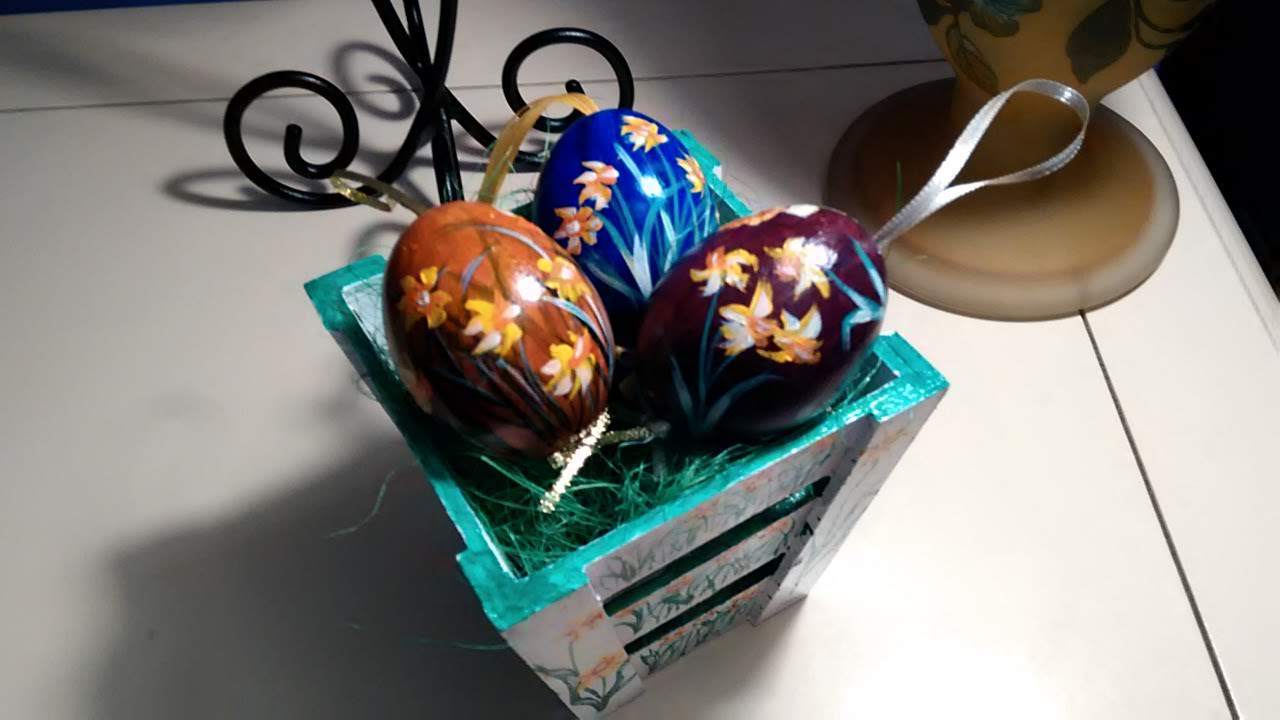 Coșuleț lemn cu 3 ouă pictate – NARCISE