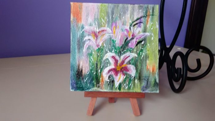 Marturii pictateMiniatură în ulei pe carton pânzat, 10x10cm, vernisată.