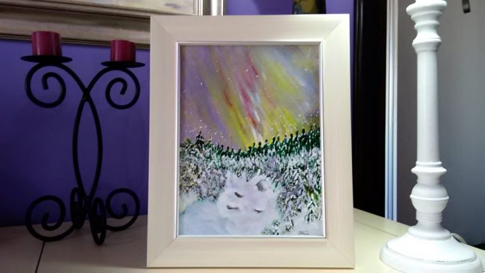 PEISAJ DE IARNĂ – cadou pictat pt. Crăciun – AURORA BOREALĂ