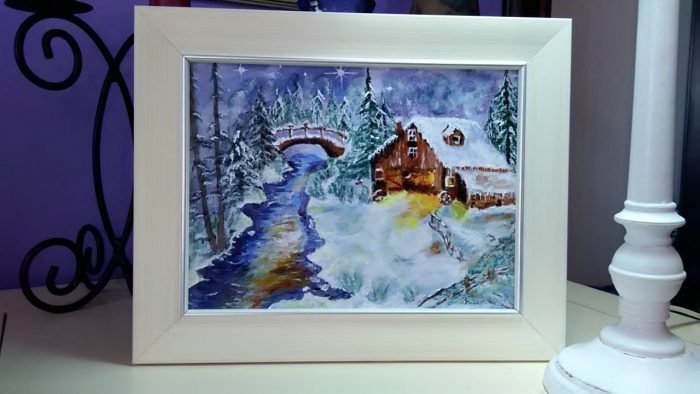 PEISAJ DE IARNĂ – cadou pictat pt. Crăciun – CASA DE IARNĂ