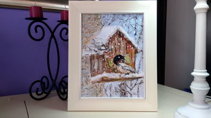 PEISAJ DE IARNĂ – cadou pictat pt. Crăciun – CĂSUȚA PĂSĂRILOR ÎN AJUN