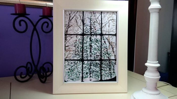 PEISAJ DE IARNĂ – cadou pictat pt. Crăciun – IARNA VĂZUTĂ LA FEREASTRĂ