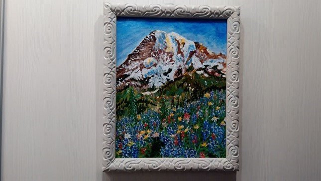 Cadouri pictate pe pânzăPictură pe carton pânzat, 24x30cm, în culori acrilice, tehnica în straturi, vernisată și înrămată. Aer curat, soare, mirosul florilor de munte…